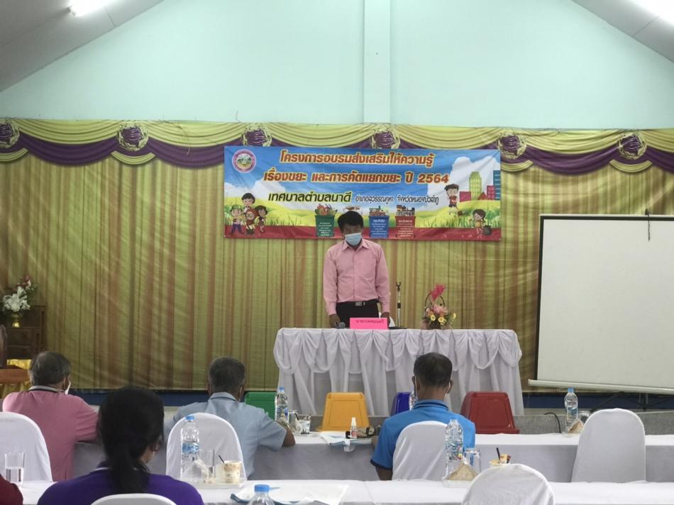 description วันที่ 1 กันยายน พ.ศ. 2564 เทศบาลตำบลนาดีดำเนินการจัดโครงการอบรมส่งเสริมให้ความรู้เรื่องขยะและการคัดแยกขยะ โดยมีกลุ่มเป้าหมายผู้นำและประธาน อสม. จำนวน 20 คน person เทิดพิทักษ์