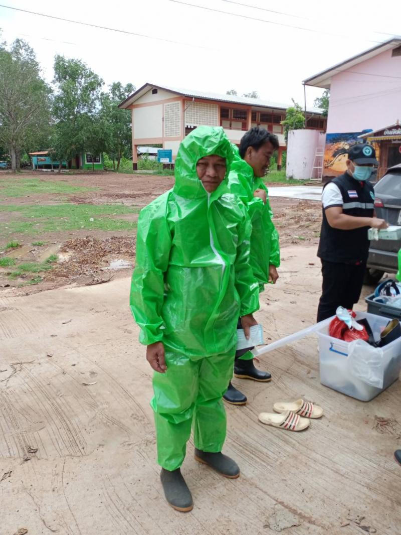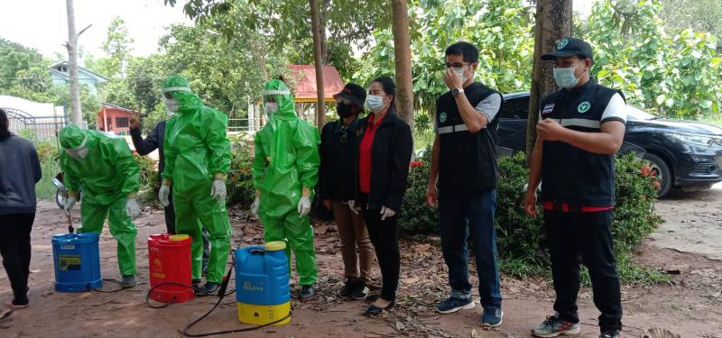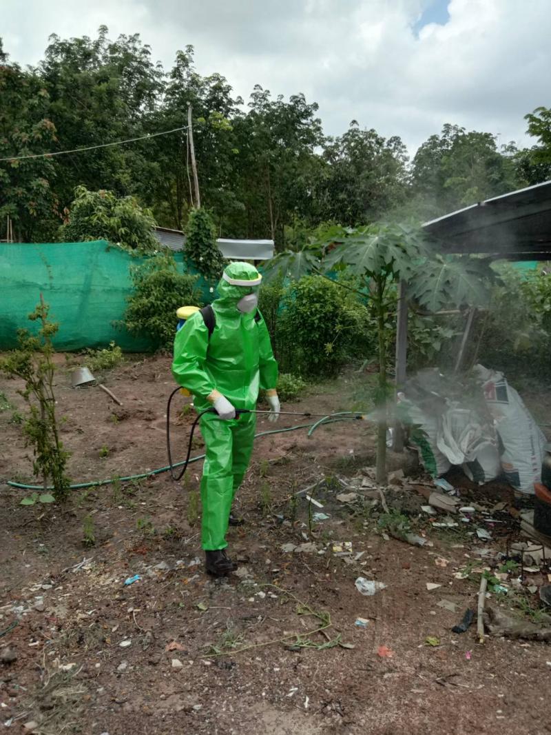 เจ้าหน้าที่งานป้องกันและบรรเทาสาธารณภัย เทศบาลตำบลนาดี ออกพ่นยาฆ่าเชื้อ ร่วมกับ อสม. ณ ม.4 ต.นาดี