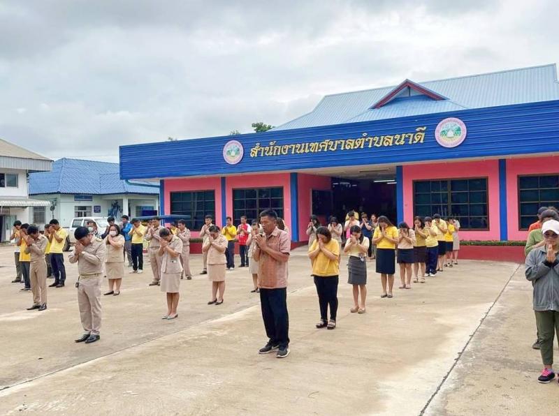 วันที่ 3 กรกฎาคม พ.ศ.2566 นายเทศมนตรีตำบลนาดี พร้อมด้วยคณะผู้บริหาร ข้าราชการ พนักงานจ้าง พร้อมกันเข้าแถวเคารพธงชาติ ทุกวันจันทร์แรกของเดือน และมอบนโยบายการทำงานให้พนักงาน (3ภาพ) [3 กรกฎาคม 2566]