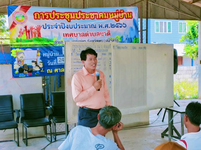 การประชาคมหมู่บ้าน เพื่อทบทวนแผนพัฒนาเทศบาล ปีงบประมาณ พ.ศ.2566 หมู่4 บ้านโนนสำราญ (จำนวน6ภาพ) [24 มีนาคม 2566]