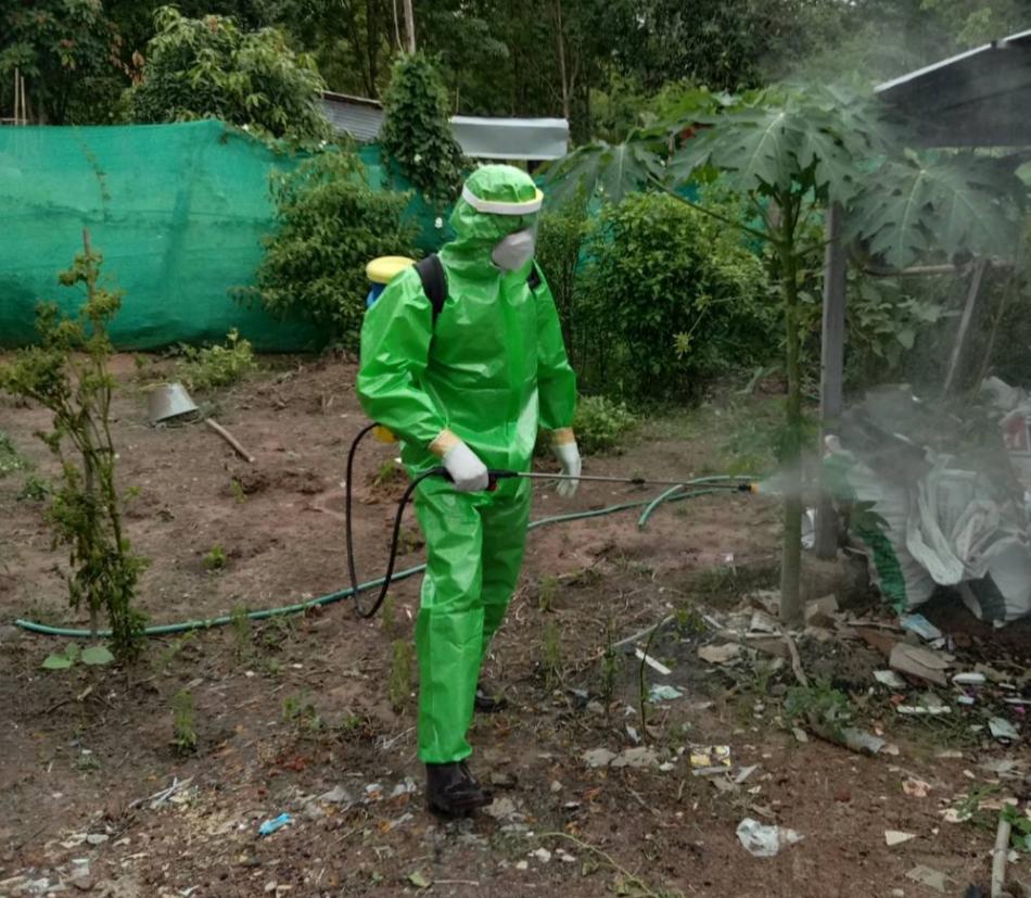 เจ้าหน้าที่งานป้องกันและบรรเทาสาธารณภัย เทศบาลตำบลนาดี ออกพ่นยาฆ่าเชื้อ ร่วมกับ อสม. ณ ม.4 ต.นาดี [2 พฤษภาคม 2564]