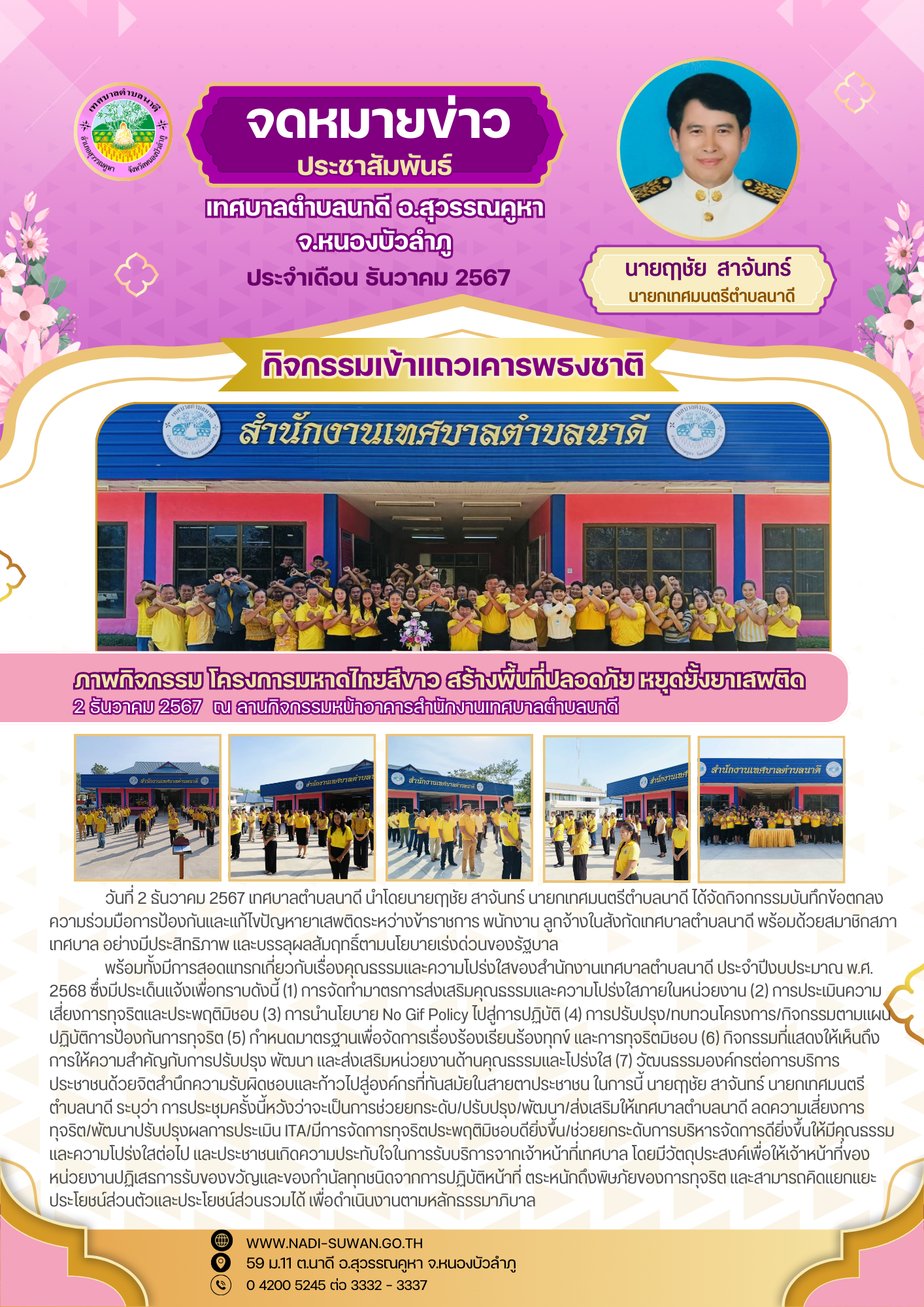 พร้อมทั้งมีการสอดแทรกเกี่ยวกับเรื่องคุณธรรมและความโปร่งใสของสำนักงานเทศบาลตำบลนาดี ประจำปีงบประมาณ พ.ศ. 2568 ซึ่งมีประเด็นแจ้งเพื่อทราบดังนี้